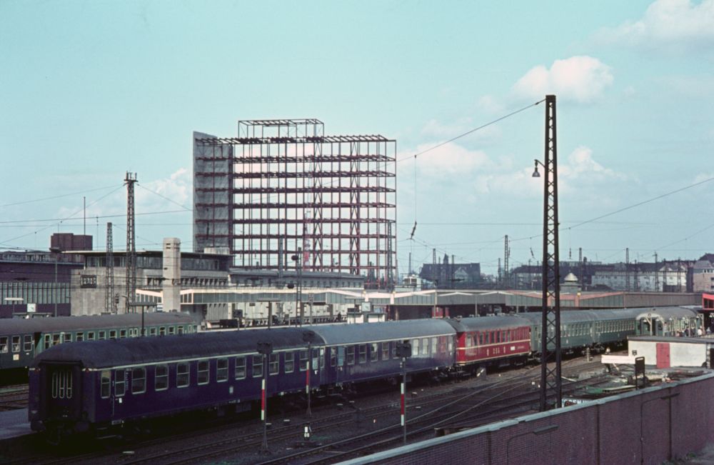 Ende der 1950er-Jahre wurde in Essen der neue Hauptbahnhof eröffnet – Fotografien von Zügen bzw. Lokomotiven auf den Bahnsteiggleisen dürfte es „jede Menge“ geben, doch wer hat schon fotografiert, wie damals das Empfangsgebäude von innen aussah? Der eine oder andere wird sich vielleicht noch an das ursprüngliche Aussehen erinnern – ein paar Fotos aus der Zeit unmittelbar nach der Eröffnung sollen der Erinnerung ein wenig „auf die Sprünge“ helfen. In den 1960er-Jahren wurde außerdem ein Hochhaus in unmittelbarer Bahnhofsnähe errichtet, welches von der Deutschen Bundesbahn als Verwaltungssitz genutzt wurde. Die nachfolgenden Aufnahmen zeigen das Stahlskelett des Rohbaus sowie das Aussehen nach der Fertigestellung. Aufgrund zu hoher Sanierungskosten wurde das Gebäude übrigens 2017 abgerissen.