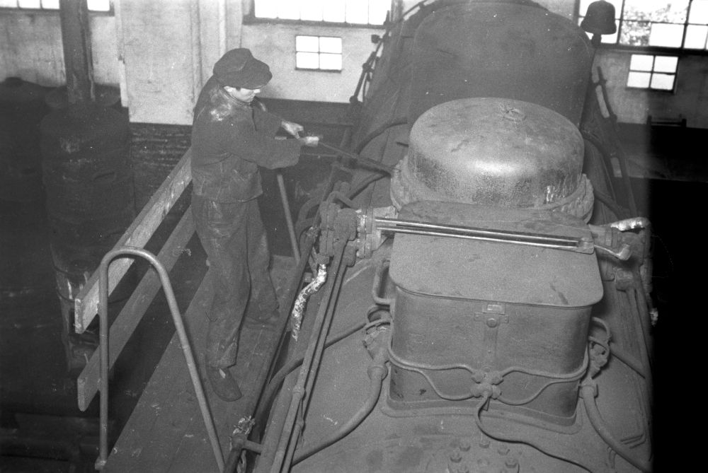 Die Einfahrt in den Lokschuppen war häufig recht eng – für den Lokführer bedeutete dies, dass er besonders vorsichtig sein musste. Aufnahme aus dem Bw Neuss im Jahr 1950.