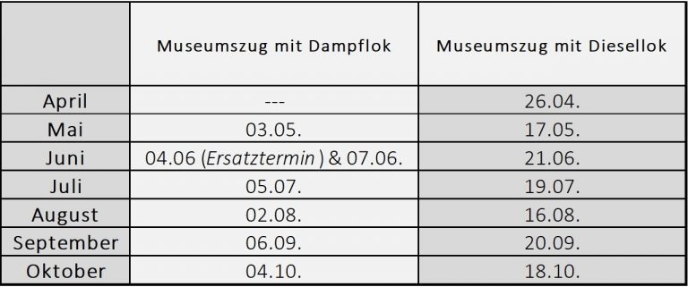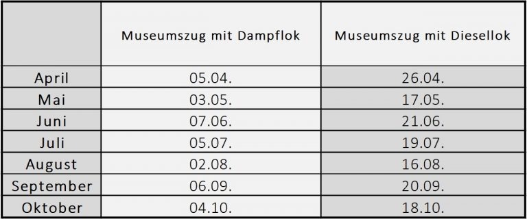 An welchen Tagen der Zug von der Diesellok gezogen wird, erfahren Sie hier: Wann fahren wir?